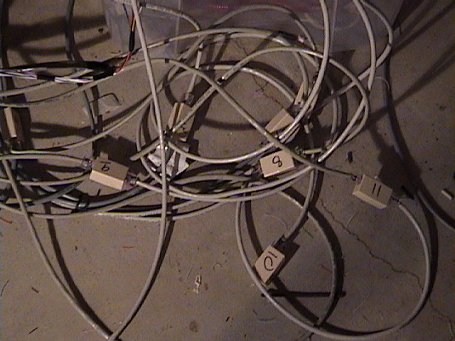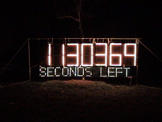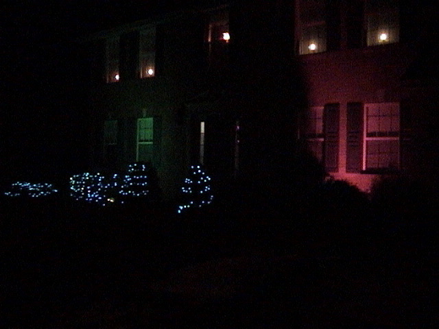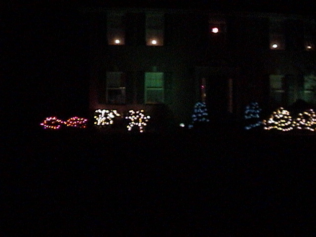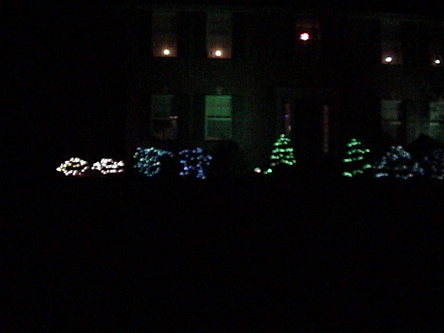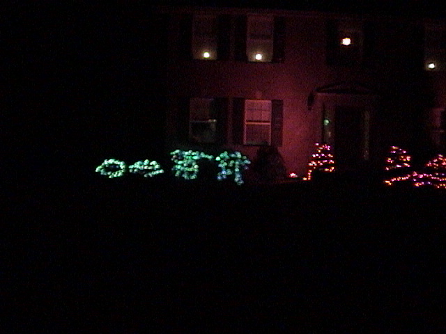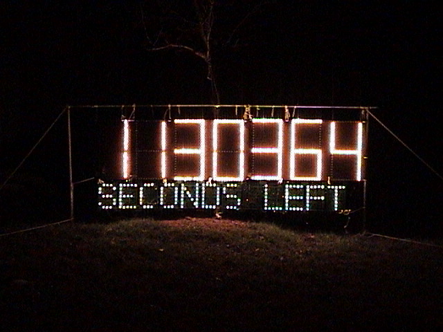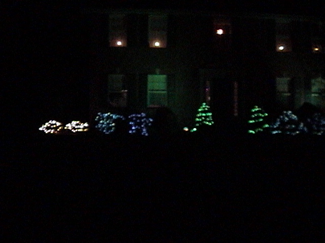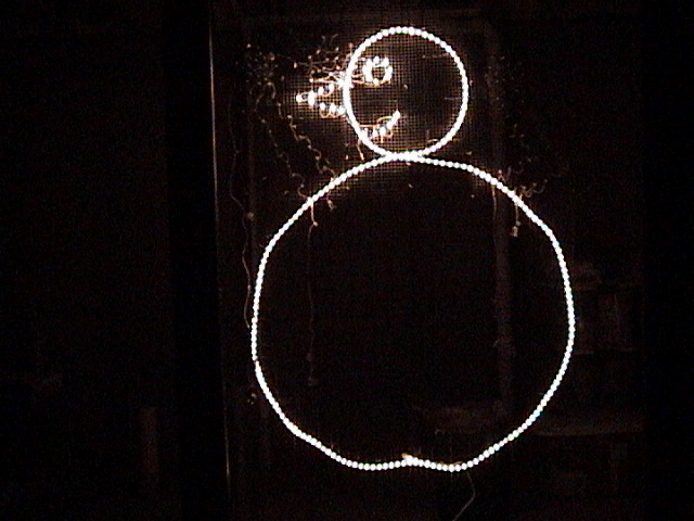This year we added the count down clock as well as the snowmen. The clock has been more popular than expected (which is good because it is more complex than viewers probably realize.) I got the idea of the clock — which counts down the number of seconds until Christmas — from a co-worker. It works similar to a standard digital clock radio. Each of the 7 digits is made up of seven segments. By lighting up different subsets of segments, all 10 digits (0–9) can be produced. Sounds simple, but this means that 49 circuits had to be built as well as 49 strands of lights hung in the correct alignment to produce the effect.