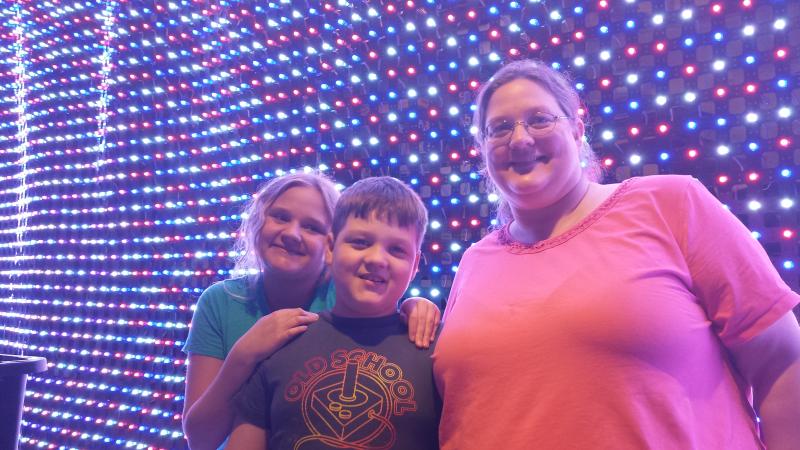 The large grid on the house was added to our display in 2015. Plenty of others have created grids, but our goal was to go over the top and create a very large grid. We ended up with an 18ft x 8ft grid mounted over our front door.