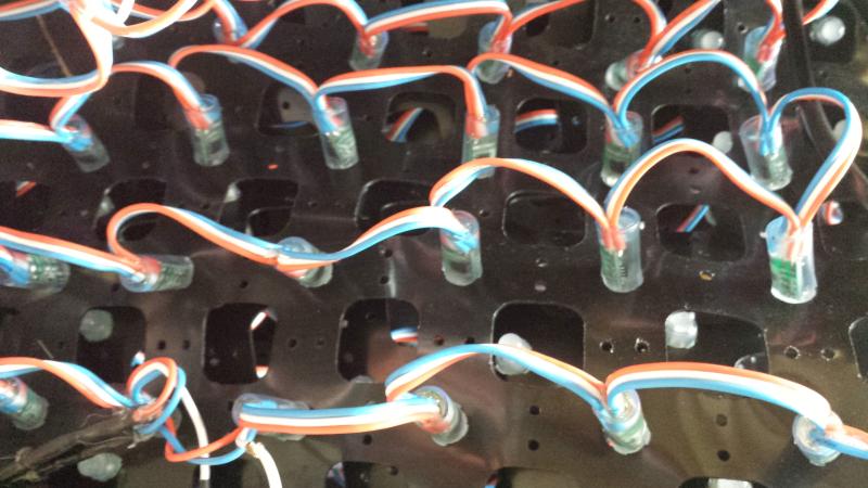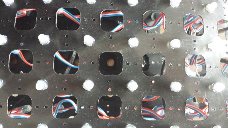 5 sheets of PixNode Mounting Net. We initially tested with 3" spacing, but end up using 2" spacing in the final design.