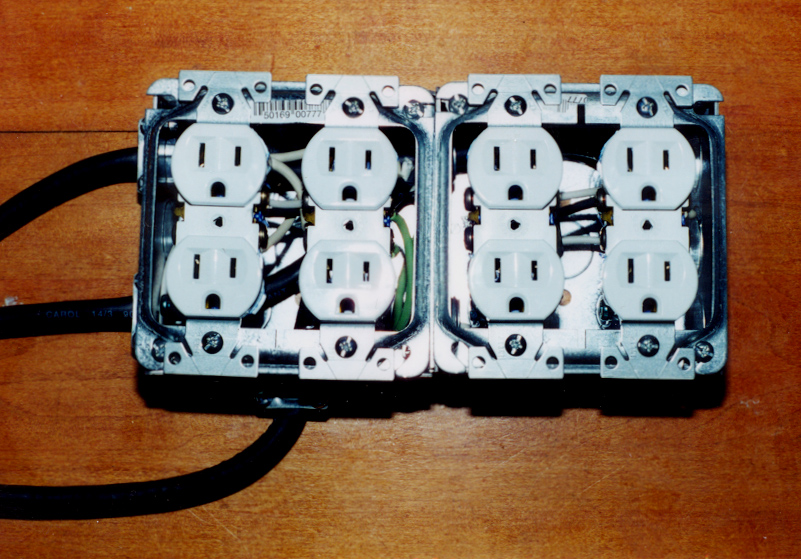 Electrical BoxesYou'll need an electrical box or two (I recommand metal) to hold your outlets. If you look at the way the outlets are wired, you notice that the NEUTRAL (right side) of each outlet is connected together. For the NEUTRAL side, it is important that the tabs between the top and bottom outlet are not broken, but since we want each outlet to be controlled individually, the tab on the hot (left side) is broken.I used 14-3 rubber coated wire because
